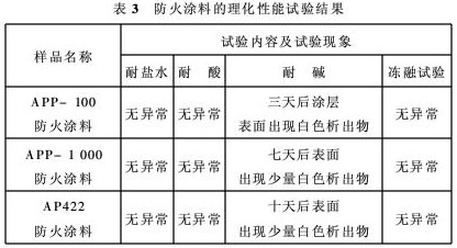 表2 三種APP產(chǎn)品的熱性能分析結果 從熱分析結果可以看出,聚合度1000的APP產(chǎn)品熱穩(wěn)定性要好于低聚合度(聚合度<100)的APP,而AP422的性能較聚合度1000的APP產(chǎn)品更為穩(wěn)定,更有利于防火涂料遇熱后的梯次膨脹發(fā)泡,可提高炭層的防火隔熱效果。 Ⅰ型APP在一定溫度和氨氣條件下,可以比較容易地轉化為Ⅱ型APP。隨著APP合成技術的發(fā)展,國內已經(jīng)有多家公司可以批量生產(chǎn)聚合度大于1000的Ⅱ型APP,但是產(chǎn)品的多項技術指標與國外Ⅱ型APP相比尚有差距,例如國內Ⅱ型APP的分子量分布較寬,含磷和含氮量較國外產(chǎn)品低等。 2.1.2不同APP產(chǎn)品制備的防火涂料的理化性能和熱性能比較 APP(聚合度100)、APP(聚合度≥1000)、AP422(聚合度≥1000)分別按照上述配方比例制備涂料樣品,參照GB14907-2002的試驗方法進行試驗,理化性能結果見表3,將聚合度達到1000的兩種防火涂料干燥后做TG試驗,得到的曲線見圖1、圖2(升溫速率10℃/min)。