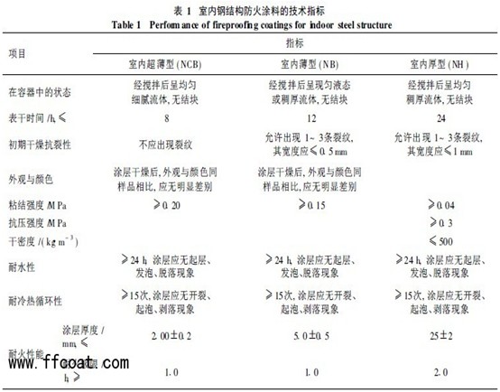 表1 室內(nèi)鋼結(jié)構(gòu)防火涂料的技術(shù)指標(biāo) |
