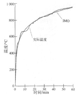 2.2船舶用A-30級(jí)防火涂料防火隔熱性能 2.2.1防火涂料隔熱性 2.2.1.1火焰溫度 試驗(yàn)過(guò)程共持續(xù)61min,根據(jù)標(biāo)準(zhǔn)爐溫曲線,點(diǎn)火1min時(shí)爐溫達(dá)到349℃,在第一個(gè)5min末,爐溫達(dá)到576℃;在15min末,爐溫達(dá)到738℃;爐溫持續(xù)上升,至30min時(shí)爐溫842℃;60min時(shí)爐溫945℃。表2列出了各點(diǎn)的實(shí)際爐溫和標(biāo)準(zhǔn)爐溫,圖2為實(shí)際爐溫/時(shí)間相對(duì)于標(biāo)準(zhǔn)溫度/時(shí)間的曲線圖。計(jì)算試驗(yàn)過(guò)程中各點(diǎn)的實(shí)際爐溫與標(biāo)準(zhǔn)溫度的誤差,均符合《規(guī)則》規(guī)定[7]的范圍。